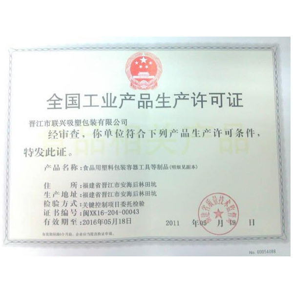聯興吸(xi)塑生産許可證(zheng)